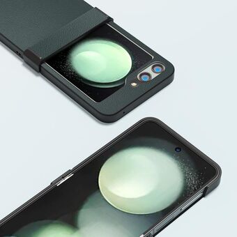 Θήκη τηλεφώνου Samsung Galaxy Z Flip5 ABEEL από γνήσιο δέρμα, κομψή μαύρη με λεπτομέρειες (Μαύρο)