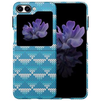 Θήκη τηλεφώνου αναδιπλούμενου τύπου PC με δερμάτινη όψη ανθρακονήματος για Samsung Galaxy Z Flip5 JUNSUNMAY (Μπλε) (JUNSUNMAY)