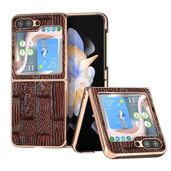 Θήκη τηλεφώνου Samsung Galaxy Z Flip5 Waves Series Nano Electroplating Genuine Leather (Μπλε)