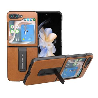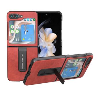 Θήκη τηλεφώνου για Samsung Galaxy Z Flip5 ABEEL, Δερμάτινη υφή δύο χρωμάτων PU με βάση (Κόκκινο)