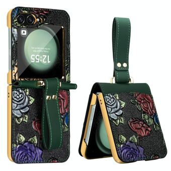 For Samsung Galaxy Z Flip5 VIETAO Integrated Embossed Pattern Full Coverage Phone Case with Wrist Strap(Green) (VIETAO)