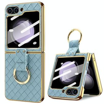 For Samsung Galaxy Z Flip5 VIETAO Woven Leather Metal Ring Phone Case(Blue) (VIETAO)