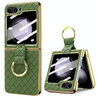 For Samsung Galaxy Z Flip5 VIETAO Woven Leather Metal Ring Phone Case(Green) (VIETAO)