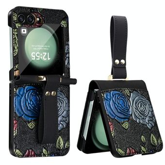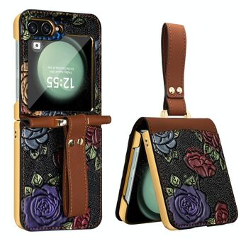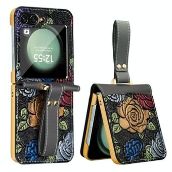 Θήκη τηλεφώνου VIETAO με ενσωματωμένο ανάγλυφο σχέδιο και πλήρη κάλυψη για Samsung Galaxy Z Flip5 με λουρί καρπού (Μαύρο) (VIETAO)
