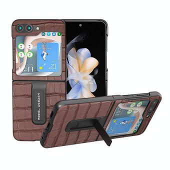 Θήκη τηλεφώνου από γνήσιο δέρμα με υφή κροκόδειλου για Samsung Galaxy Z Flip5 ABEEL με βάση στήριξης (Καφέ)