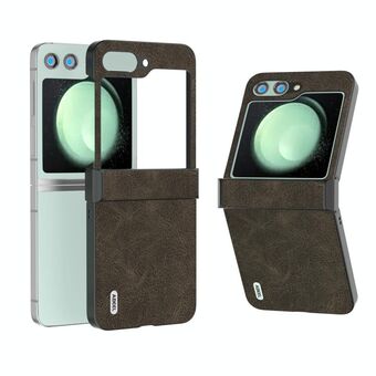 Θήκη τηλεφώνου Samsung Galaxy Z Flip5 ABEEL με υφή λυτσί PU σε ρετρό στυλ (Καφέ)