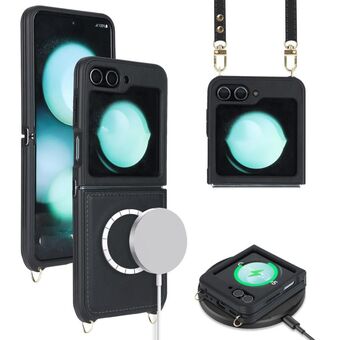 Θήκη τηλεφώνου Samsung Galaxy Z Flip5 5G Crossbody R20 με υφή δέρματος και MagSafe (Μαύρο)