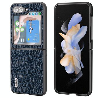 Θήκη τηλεφώνου Samsung Galaxy Z Flip5 ABEEL από γνήσιο δέρμα με σχέδιο κροκόδειλου, μαύρο περίγραμμα (Κόκκινο)