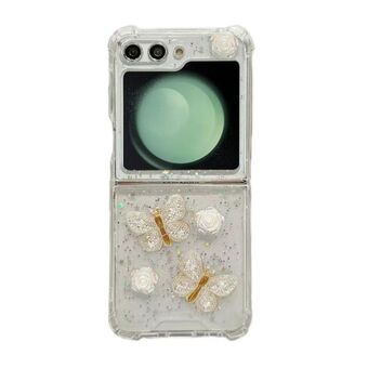 Θήκη τηλεφώνου TPU με τρισδιάστατη πεταλούδα και γκλίτερ για Samsung Galaxy Z Flip5 (Χρυσό)