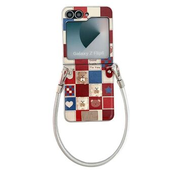 Θήκη κινητού τηλεφώνου πλήρους κάλυψης για Samsung Galaxy Z Flip5 με σχέδιο Λαττικού Μικρού Αρκούδου και λουρί καρπού (Ασημί)
