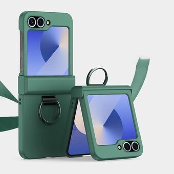 Θήκη τηλεφώνου με δακτύλιο για Samsung Galaxy Z Flip5 5G, εξαιρετικά λεπτή, με αίσθηση δέρματος και προστασία μεντεσέ (Ροζ)