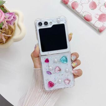 Θήκη τηλεφώνου TPU με πέρλες και ρητίνες για Samsung Galaxy Z Flip6 (Χρώματα)