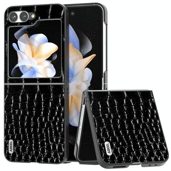 Θήκη τηλεφώνου Samsung Galaxy Z Flip6 ABEEL από γνήσιο δέρμα με σχέδιο κροκόδειλου, μαύρο περίγραμμα (Κόκκινο)