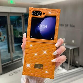 For Samsung Galaxy Z Flip6 JUNSUNMAY Litchi Leather Skin PC Folding Phone Case(Orange) (JUNSUNMAY)