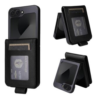Για Samsung Galaxy Z Flip6 PC υβριδικό PU δέρμα τηλέφωνο υπόθεση με πίσω Clip Holder (Μαύρο)