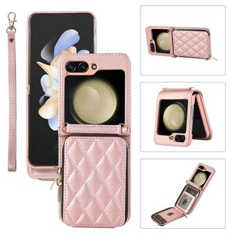 Για Samsung Galaxy Z Flip6 Rhombic πλήρη φερμουάρ πορτοφόλι δερμάτινη θήκη τηλεφώνου (Rose Gold)