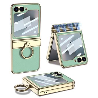 Για το Samsung Galaxy Z Flip6 PC υβριδικό PU δέρμα τηλέφωνο υπόθεση με πίσω στήριγμα κλιπ (πράσινο)