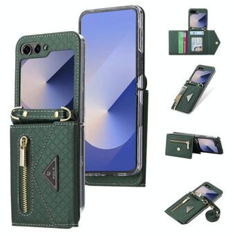 Για Samsung Galaxy Z Flip6 POLA Grid υφή πολλαπλών καρτών υποδοχές φερμουάρ πορτοφόλι υπόθεση τηλεφώνου (πράσινο) (POLA)