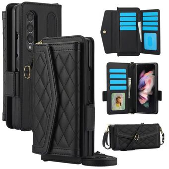 For Samsung Galaxy Z Fold4 Splicing Rhombic Texture Card Holder Phone Case with Lanyard, Not Included Pen(Black)