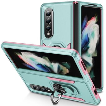 For Samsung Galaxy Z Fold4 PC + TPU Shockproof All Inclusive Phone Case with Holder(Green+Pink)
