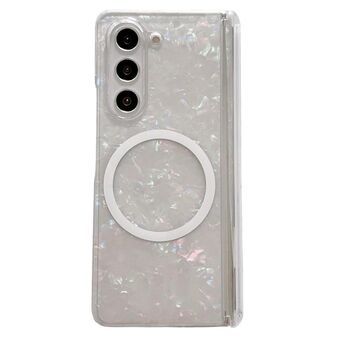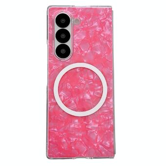 For Samsung Galaxy Z Fold4 Pearlescent Shell Texture MagSafe Phone Case(Pink Green)