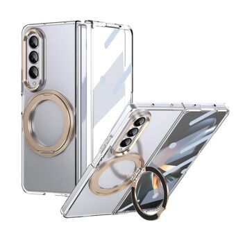 For Samsung Galaxy Z Fold4 5G Integrated Ice-feel High-transparency 360-Degree Rotating Stand MagSafe Folding Phone Case(Desert Gold)