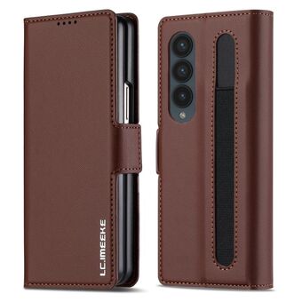 For Samsung Galaxy Z Fold4 LC.IMEEKE L1 Series Frosted Fine Texture PU Phone Case with Pen Slot, Pen Not Included(Brown) (LC.IMEEKE)