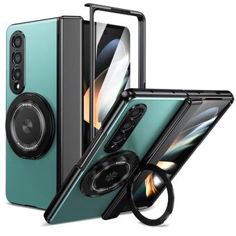 For Samsung Galaxy Z Fold4 5G Plating Fold MagSafe Rotating Holder PC Shockproof Phone Case(Purple)