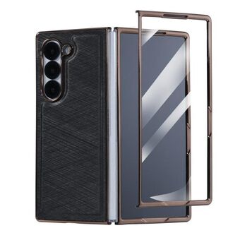 For Samsung Galaxy Z Fold4 Bamboo Fiber Texture + Flannel Phone Case with Tempered Film(Black)