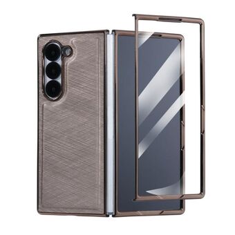 For Samsung Galaxy Z Fold4 Bamboo Fiber Texture + Flannel Phone Case with Tempered Film(Silver Grey)
