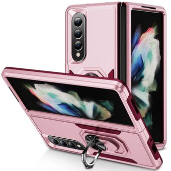For Samsung Galaxy Z Fold4 PC + TPU Shockproof All Inclusive Phone Case with Holder(White+Pink)