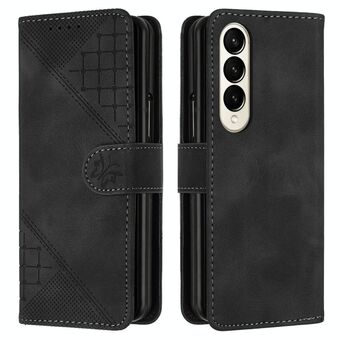 For Samsung Galaxy Z Fold4 YX0080 Grid Butterfly Embossed Pattern Flip Leather Phone Case with Lanyard(Black)