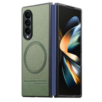 For Samsung Galaxy Z Fold4 Twill Fabric Leather Skin Magnetic Back Phone Case(Green)
