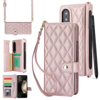 Για Samsung Galaxy Z Fold4 Crossbody πολυλειτουργική θήκη τηλεφώνου από δέρμα ρομβοειδούς (ροζ χρυσό)