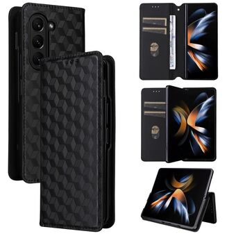 For Samsung Galaxy Z Fold6 Cubic Grid Texture Flip Leather Phone Case(Black)