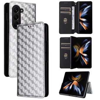 For Samsung Galaxy Z Fold6 Cubic Grid Texture Flip Leather Phone Case(Silver)