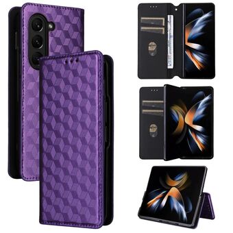 For Samsung Galaxy Z Fold6 Cubic Grid Texture Flip Leather Phone Case(Purple)