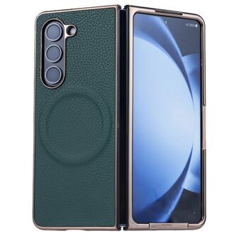 For Samsung Galaxy Z Fold6 Three Parts MagSafe Litchi Texture Fold Phone Case(Green)