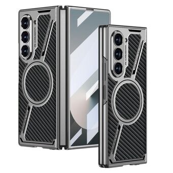For Samsung Galaxy Z Fold6 GKK Integrated Electroplating Leather Z-Shape MagSafe Phone Case(Carbon Fiber) (GKK)
