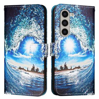 For Samsung Galaxy Z Fold6 Colored Drawing Pattern Plain Weave Leather Phone Case(Waves And Sun)