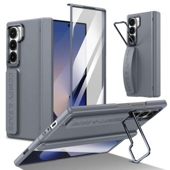 For Samsung Galaxy Z Fold6 Film Integrated Lens Frame Bracket Phone Case with Wristband(Grey)