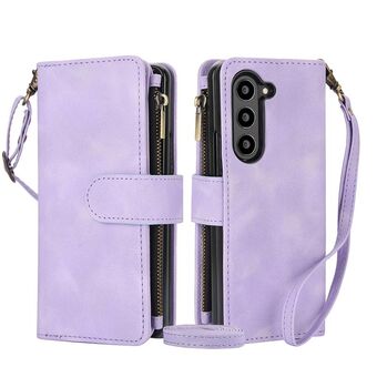 Για Samsung Galaxy Z Fold6 Dream 9-Card φερμουάρ πορτοφόλι RFID δερμάτινη θήκη τηλεφώνου με κορδόνι (μωβ)