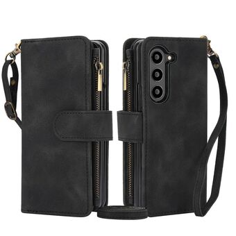 Για Samsung Galaxy Z Fold6 Dream 9-Card φερμουάρ πορτοφόλι RFID δερμάτινη θήκη τηλεφώνου με κορδόνι(Μαύρο)