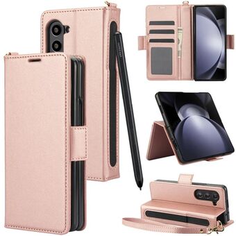 Για Samsung Galaxy Z Fold6 Dream 9-Card φερμουάρ πορτοφόλι RFID δερμάτινη θήκη τηλεφώνου με κορδόνι (Rose Gold)