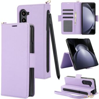 Για Samsung Galaxy Fold6 5G Side Πόρπη δερμάτινη θήκη τηλεφώνου (ανοιχτό μοβ)