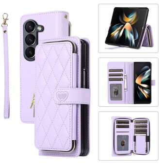For Samsung Galaxy Z Fold6 Rhombic Full Zipper Wallet Leather Phone Case(Purple)