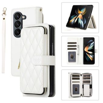 For Samsung Galaxy Z Fold6 Rhombic Full Zipper Wallet Leather Phone Case(White)