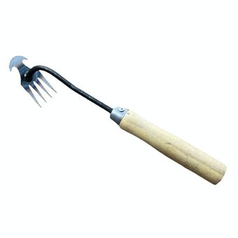 Εργαλείο αφαίρεσης ζιζανίων διπλού σκοπού με τέσσερα δόντια Κηπουρική τσουγκράνα ξεριζώματος, Μήκος: 35cm Γαλβανισμένη ξύλινη λαβή