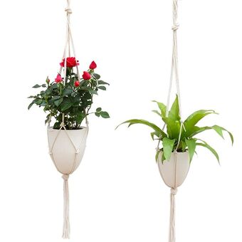 Χειροποίητο σχοινί κάνναβης που κρέμεται από πλαστική γλάστρα αποθήκευσης νερού, μέγεθος: 18.3cm
