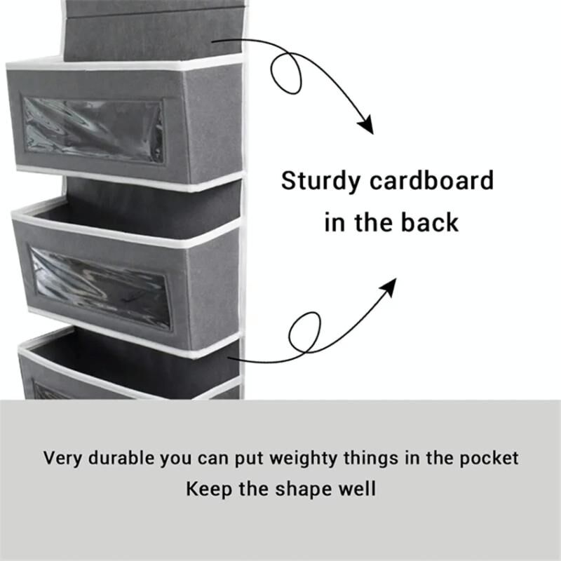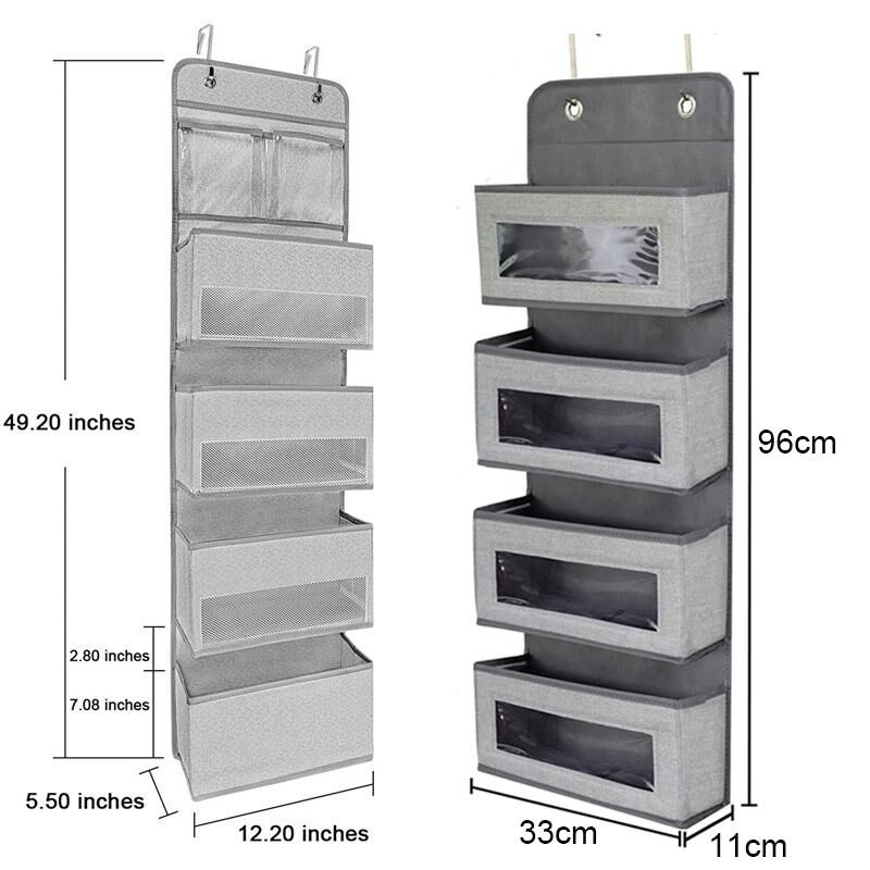 GD03 Επίτοιχη υφασμάτινη τσάντα αποθήκευσης ντουλάπα δωμάτιο πόρτα πίσω από την κρεμαστή τσάντα, χρώμα: 4+1 γκρι